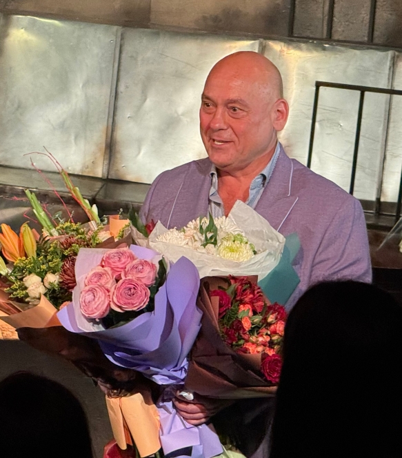 Зрители тепло встретили работу творческого коллектива. По окончании спектакля долго не умолкали аплодисменты. Актёры и режиссёр постановки – заслуженный артист России Борис Ивушин (на снимке крайний справа), а также сам автор были завалены цветами.