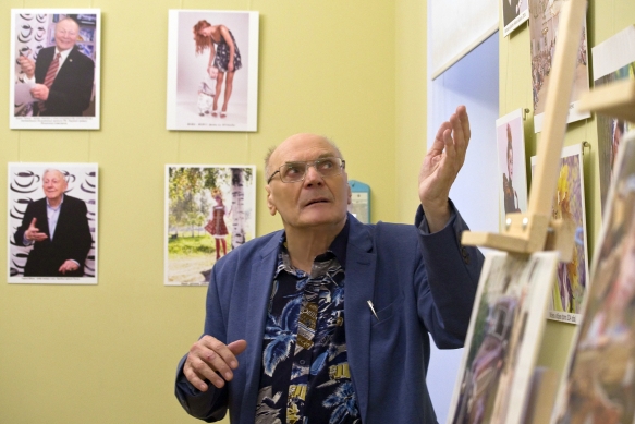 На открытии собрались друзья и коллеги юбиляра. Он рассказал о своём творчестве, о знаменитых людях, с кем довелось повстречаться в жизни. Среди работ автора можно увидеть живые портреты известных актёров – Юрия Никулина, Георгия Штиля, Юрия Кузнецова, Алексея Смирнова, Алексея Баталова, космонавта Светланы Савицкой, конструктора Михаила Калашникова. Среди других работ привлекают внимание яркие фотографии фотомоделей и детские портреты.